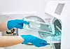 > Les instruments non jetables sont trempés dans un bain décontaminant, puis passés aux ultrasons.